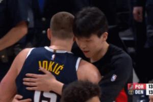 GIF-約基奇看到了楊瀚森 過去兩個人愛的抱抱