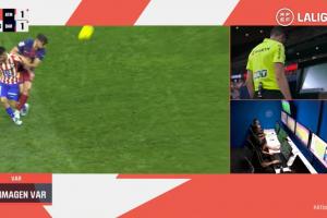 馬競vs巴薩一役:皮球明顯處于雙方爭搶狀態,主裁判最初紅牌判罰正確,VAR本不應介入。VAR回看建議導致了錯誤改判,主裁判應堅持原判。