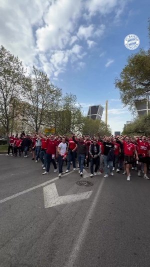 體育資訊04月08日訊 歐冠8強首回合,拜仁客戰皇馬,賽前拜仁官方曬出了球迷遠征軍朝伯納烏前進的視頻。