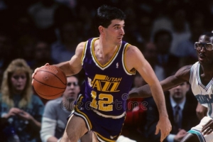 斯托克頓1962年3月26日出生于華盛頓州斯波坎,1984年NBA選秀,猶他爵士隊在首輪第16順位選中了他。斯托克頓的生涯全部效力于猶他爵士隊(1984-2003),共出戰1504場比賽,場均貢獻13.1分2.7籃板10.5助攻2.2搶斷,投籃命中率51.5%,三分命中率38.4%,罰球命中率82.6%,10次入選全明星(1989-1997,2000),并于1993年與卡爾·馬龍共享全明星MVP。
