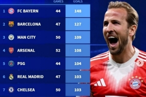 體育資訊4月8日訊 在歐冠淘汰賽首回合,拜仁2-1擊敗皇馬。德轉(zhuǎn)盤點了本賽季目前五大聯(lián)賽球隊在各項賽事總進球榜,其中拜仁遙遙領(lǐng)先,具體如下: