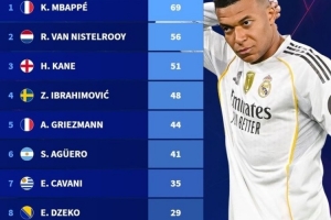 體育資訊4月9日訊 《轉(zhuǎn)會(huì)市場(chǎng)》統(tǒng)計(jì)了從未奪得歐冠冠軍的歐冠射手榜,姆巴佩領(lǐng)跑。