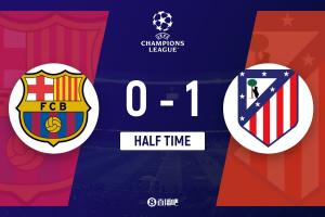 體育資訊4月9日訊 北京時間4月9日凌晨3:00,歐冠1/4決賽首回合,巴薩坐鎮諾坎普迎戰馬競。上半場拉什福德進球因亞馬爾越位在先被吹掉,坎塞洛低射造險,庫巴西直紅被罰下,阿爾瓦雷斯任意球世界波直接破門,馬競暫1-0巴薩。