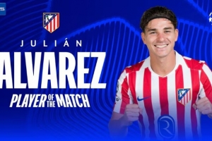 體育資訊4月9日訊 歐冠1/4決賽首回合,馬競2-0戰勝巴薩。阿爾瓦雷斯賽后被評為全場最佳球員。