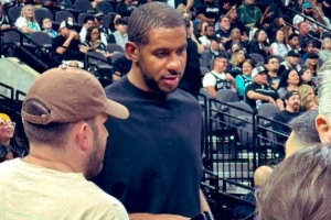 馬刺主場迎戰(zhàn)開拓者,阿爾德里奇來到現場觀戰(zhàn)。