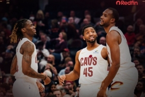 賽后球隊官方發布贏球海報,封面為米切爾、莫布里和埃利斯。