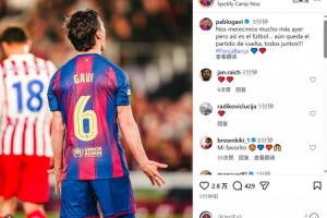加維社媒曬出比賽照片,并寫(xiě)道:“昨天我們本應(yīng)得到更好的結(jié)果,但這就是足球。還有次回合比賽,讓我們團(tuán)結(jié)一心!”