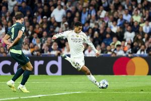 在貝林厄姆的一次進攻推進中,他給姆巴佩送出一腳傳球,姆巴佩射門迫使諾伊爾做出撲救。皇馬的第一次威脅進攻就打上了貝林厄姆的烙印。