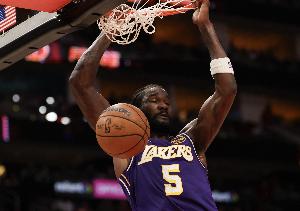 本場比賽,湖人中鋒艾頓上場31分鐘,11投9中得到21分5籃板1助攻。