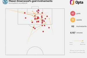 格林伍德加盟馬賽以來出戰76場比賽,參與62粒進球。