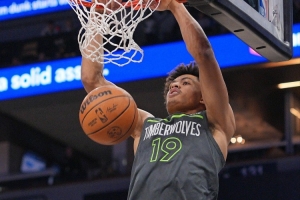 體育資訊4月11日訊 NBA常規賽,森林狼半場69-73落后火箭。