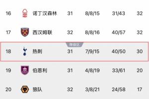 這導致熱刺成為了各大機構眼中最新的降級熱門球隊,外媒Kalshi Sport的數據顯示,熱刺的降級概率已經來到39%,高于直接競爭對手西漢姆聯2個百分點,僅低于狼隊和伯恩利兩支球隊。而這兩支球隊分別落后安全區12分和15分,基本已難逃降級命運。