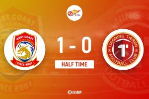 半場結束,青島西海岸暫1-0遼寧鐵人。