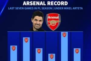 體育資訊4月11日訊 阿森納在本輪英超爆冷主場1-2不敵伯恩茅斯,數據統計顯示塔帥執教阿森納的賽季最后7輪聯賽從未拿滿分數。