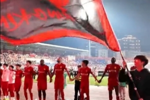 體育資訊4月11日訊 中超第5輪,重慶銅梁龍主場2-1擊敗武漢三鎮(zhèn),取得中超兩連勝。賽后,本場比賽停賽的李鎮(zhèn)全和沒有上場的隊長向余望現(xiàn)身球場,和隊友一起與球迷互動,慶祝這場來之不易的勝利。