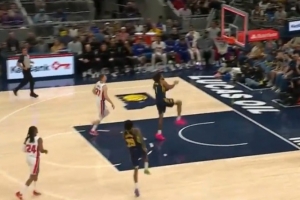 GIF-奧比·托平反擊胯下單臂暴扣,但先超時了