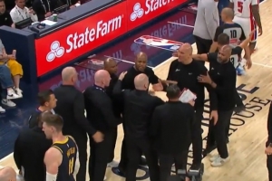 GIF-斯勞森背后撞倒斯圖爾特被吹二級惡意直接驅逐,雙方助教團小沖突各自吃T