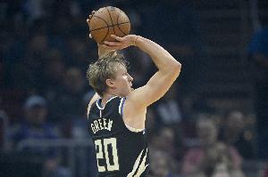 AJ·格林上半場打了20分15秒,10投7中,其中三分8中5,拿到19分2籃板1助攻1搶斷。