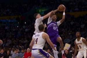 GIF-拉拉維亞干擾貝利被吹犯規,湖人挑戰成功