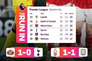 著名數(shù)據(jù)機(jī)構(gòu)Opta的超級(jí)計(jì)算機(jī)演算結(jié)果顯示,熱刺目前的降級(jí)概率達(dá)到了46.5%,比西漢姆聯(lián)(36.03%)高出了10個(gè)百分點(diǎn)。森林和利茲聯(lián)的降級(jí)概率則不到10%。