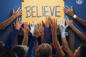 海報中,“Believe”(相信)一詞格外醒目,巴薩官推還配文“相信方能感受活著”,這句話引用了美國喜劇《足球教練》中的臺詞。