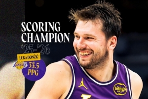 據湖人官方統計,在過去的三個賽季中,東契奇第二次榮獲得分王。他是NBA歷史上第20位多次獲得得分王的球員。他也是湖人隊史上第五位獲此殊榮的球員,上一位是科比(2006-07賽季)。