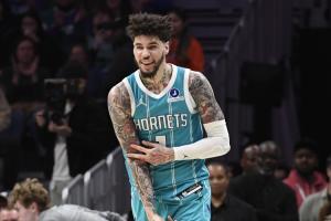 本場比賽,黃蜂當家球星拉梅洛·鮑爾上半場打得比較隨意,但下半場恢復了合理的打法,全場他出戰(zhàn)40分鐘,31投僅12中、其中三分球16中2,加時最后時刻,三球先是關鍵失誤,但隨后準絕殺上籃完成救贖;全場,三球拿到30分5板10助!