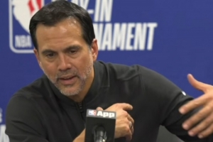 體育資訊4月15日訊 NBA東部附加賽九十名的爭奪,熱火加時126-127惜敗黃蜂。賽后熱火主帥斯波爾斯特拉接受了媒體采訪,談到了阿德巴約受傷的情況,以下為采訪全文。