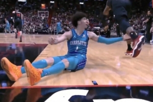 值得一提的是,去年10月28日黃蜂客場117-144不敵熱火的比賽中,三球在倒地后也曾抓過阿德巴約小腿。