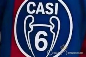 龍賽羅社媒曬圖,一件紅藍(lán)球衣的歐冠臂章上標(biāo)注數(shù)字“6”,但是上方寫著西語單詞“CASI(差點(diǎn))”。