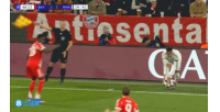 下半場比賽開始不久,皇馬獲得前場界外球,姆巴佩先是拿球假意要自己發,但他突然將球向后一扔,皇馬換人發球。