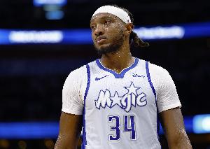 體育資訊4月16日訊 附加賽上半場(chǎng),魔術(shù)客場(chǎng)55-59落后76人4分。