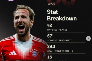 體育資訊4月16日訊 在歐冠淘汰賽次回合拜仁4-3擊敗皇馬的比賽中,凱恩破門,打進個人本賽季各項賽事第50球。
