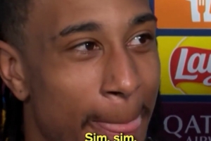 播吧4月16日訊 歐冠1/4決賽次回合比賽,拜仁主場4-3擊敗皇馬,兩回合總比分6-4晉級,奧利塞攻入關鍵進球,當選此役最佳球員,賽后他接受采訪時發生了有趣的一幕。