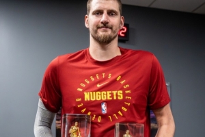 體育資訊4月16日訊 掘金官方社媒更新,曬出了約基奇領(lǐng)取本賽季助攻王和籃板王獎(jiǎng)杯的照片。