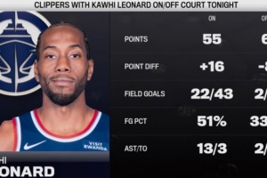 據(jù)統(tǒng)計(jì),上半場(chǎng)比賽中,小卡在場(chǎng)時(shí)快船正負(fù)值+16,期間球隊(duì)投籃命中率51%;下場(chǎng)后為-8,期間球隊(duì)投籃命中率33%。