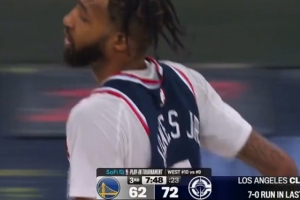 GIF-庫(kù)里想造犯規(guī)直接被小瓊斯切掉反擊直接上籃
