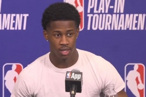 VJ:“泰瑞斯打得非常好。他今晚穿了一雙新鞋,挺酷的。但他告訴我們,我們要一直向前看。他早就承諾過我們會打進季后賽,他做到了。”