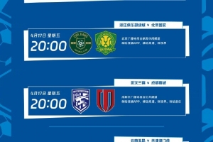 4月17日20:00,浙江俱樂部綠城vs北京國安