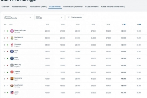 體育資訊4月16日訊 歐足聯官方統計數據顯示,拜仁近5個賽季的歐足聯積分系數已反超皇馬,升至第一。