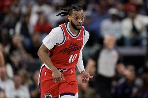 上半場,快船球員加蘭表現中規中矩,半場結束前踩到攝影師崴腳返回更衣室,打了15分鐘,投籃8中3,三分球6中2,拿到8分4助攻的數據。