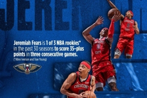 他也成為了過去30個賽季中,NBA僅有的三位新秀之一,能夠在連續三場比賽中每場砍下35+分。另外兩位是艾弗森和特雷·楊。