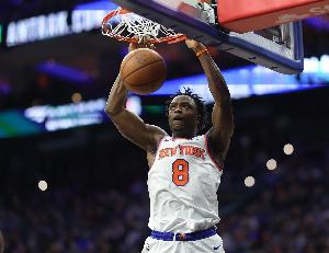 體育資訊4月19日訊 NBA季后賽首輪G1,尼克斯半場57-55領先老鷹。