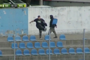 新戈里察目前在斯洛文尼亞第二級別聯(lián)賽中排名墊底,距離安全區(qū)有九分之差。當(dāng)ND貝爾廷齊的多米尼克·德爾克打入第三球時,一名新戈里察球迷一腳將看臺座椅踢飛到了空中。