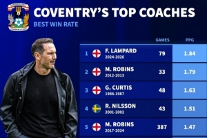 蘭帕德執教考文垂以來帶隊參加79場比賽,場均拿到1.84分,考文垂歷任主帥場均拿分最多(至少執教30場)。