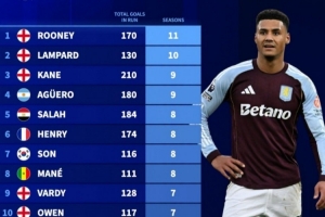 英超連續(xù)進(jìn)球上雙賽季榜:魯尼11個(gè)賽季居首,蘭帕德、凱恩前三