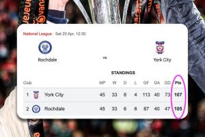 體育資訊04月20日訊 英格蘭全國聯賽(第5級別)最后一輪,前二球隊約克城和羅奇代爾將直接交鋒,決出唯一一個直通英乙的名額。