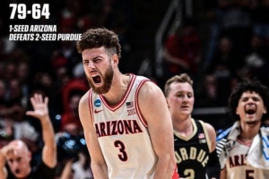 體育資訊3月29日訊 今天結束的一場NCAA錦標賽8強戰,亞利桑那大學79比64擊敗普渡大學,晉級4強。
