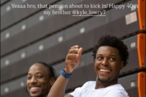 國(guó)王后衛(wèi)、洛瑞前猛龍隊(duì)友德羅贊更新了個(gè)人Ins快拍祝賀洛瑞生日快樂,并配文:耶,兄弟!你的養(yǎng)老金馬上就要開始發(fā)放了!生日快樂!