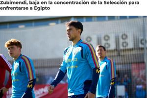 馬丁·蘇維門迪因右膝不適退出西班牙國(guó)家隊(duì)集訓(xùn)。為避免任何風(fēng)險(xiǎn)并保障球員健康,他已被移出球隊(duì)下一場(chǎng)對(duì)陣埃及的名單。阿森納足球俱樂(lè)部醫(yī)療團(tuán)隊(duì)已獲悉此事。